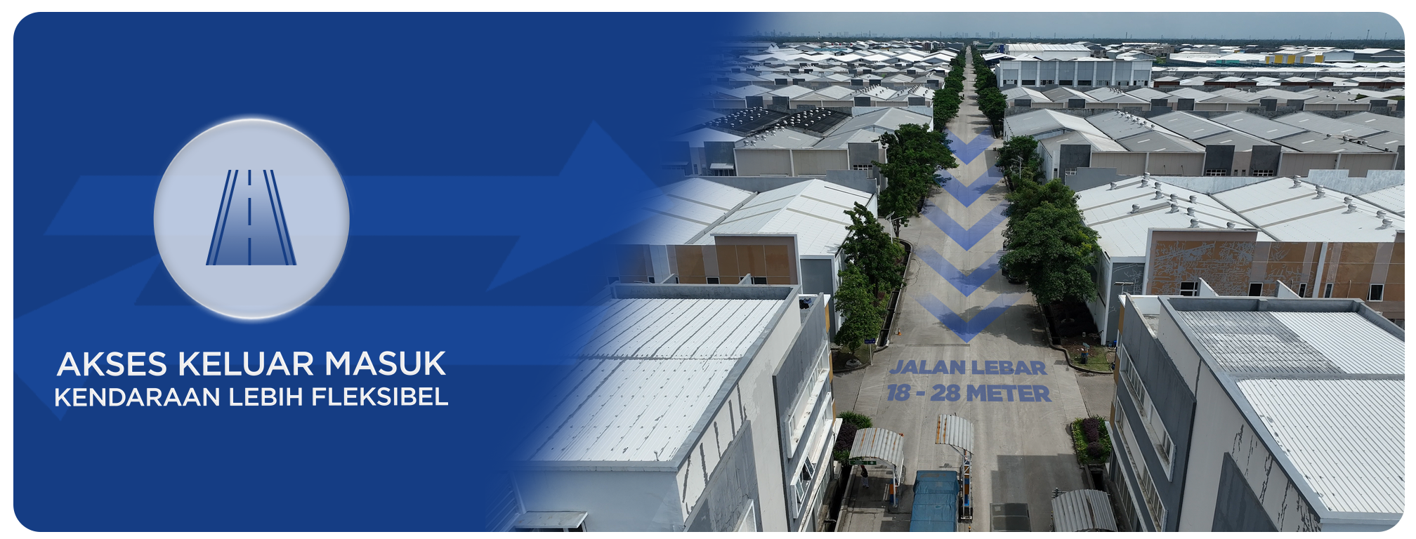 Kami memahami bahwa logistik adalah urat nadi industri. Pengembangan kami dilengkapi dengan jalan Right-of-Way (ROW) ekstra lebar yang dirancang khusus untuk mengakomodasi kendaraan berat, kontainer, dan volume lalu lintas tinggi. Perencanaan infrastruktur ini meminimalkan kemacetan, mempercepat distribusi, dan memastikan operasional bisnis Anda berjalan tanpa hambatan, sehingga memaksimalkan nilai investasi jangka panjang Anda.