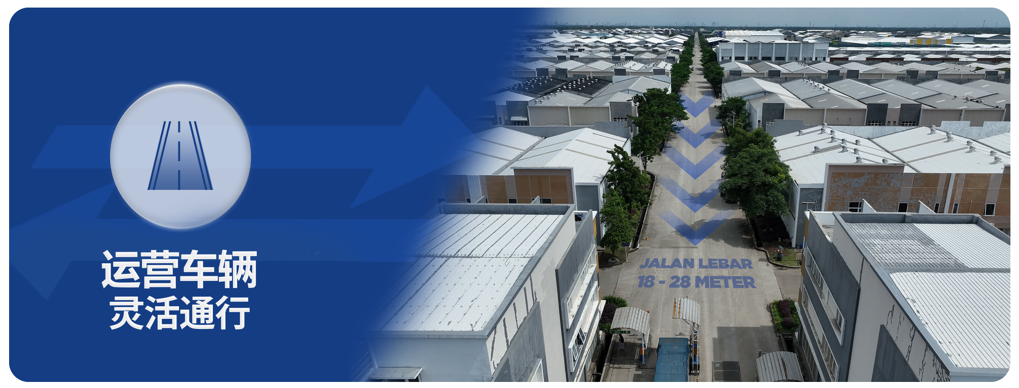我们深知物流是工业的命脉。我们的园区拥有超宽的道路规划(ROW),专为承载重型车辆、集装箱和高流量交通而设计。这种基础设施规划能最大限度地减少拥堵,加速物流配送,确您的保业务运营畅通无阻,从而最大化您的长期投资价值。