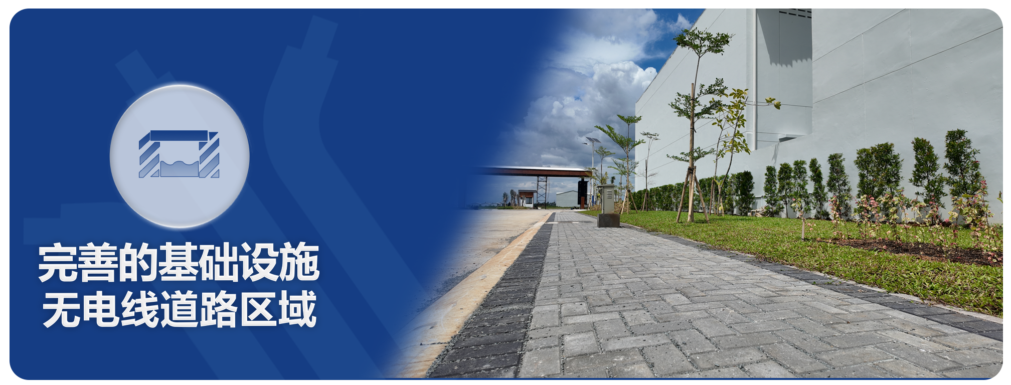我们树立了更高的标准,将所有的电力网络、水管和其他公用设施全部铺设于地下。这种隐蔽式的管网系统不仅提升了园区的整体美观度,还降低了因天气等原因导致的服务中断风险,简化了维护工作,充分体现了园区精致、现代的高端标准。