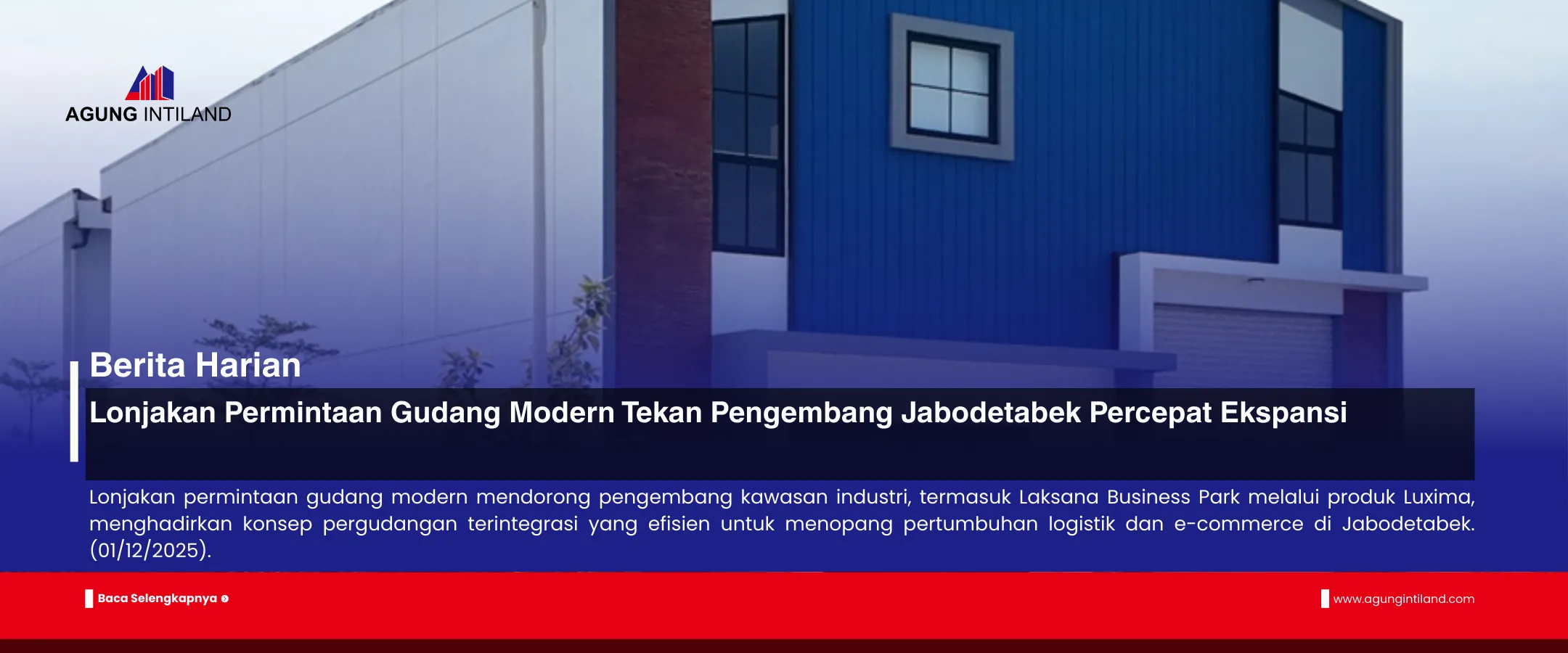 JAKARTA, Agung Intiland News— Demand for modern warehouses in the Jabodetabek region increased sharply throughout 2023–2024, forcing industrial estate developers to accelerate construction and launch new products. Strengthening the logistics, e-commerce, and FMCG distribution sectors is the main driver of growth.