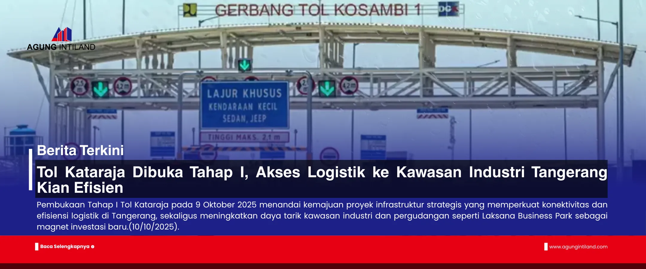 The operation of Phase I of the Kataraja Toll Road also directly impacts industrial and warehousing areas in Tangerang Regency, including Laksana Business Park located in Pakuhaji District. This area has developed over the past few years as a center for industrial, logistics, and warehousing activities targeting the Jabodetabek and national markets.